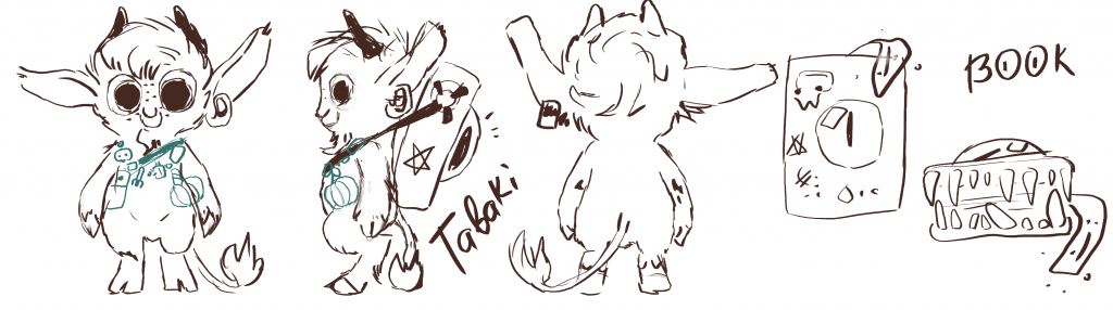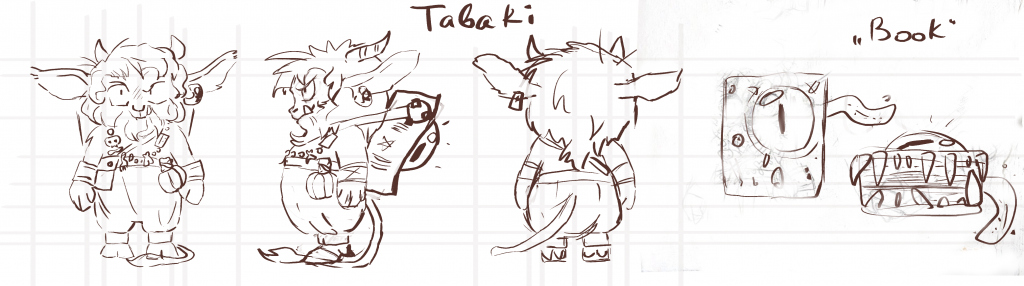Having chosen three games for comparison, I created character sketches in their style, which helped me better understand the different approaches to visual design. Among the selected styles, the art style of League of Legends (LoL) appealed to me the most. It combines high detail, expressive stylization, and a bright color palette, which allows you to create memorable and charismatic characters. The LoL style is close to me, as I prefer elaborate shapes, decorative elements, and visual depth. In this style, characters have a strong individuality – not only due to facial features, but also through costumes, silhouettes, accessories, and colors that reveal the character’s character and function in the game. For example, a character’s malice or cunning can be shown using pointed shapes, a contrasting palette or a dynamic silhouette. In my own project, I chose this approach to create my character Tabaki. I tried to style it according to LoL principles – adding an interesting shape, elements of clothing, a magic book as a key detail, and a bold color. This approach allows you to make the character not only aesthetically appealing but also ready to integrate into the game world with its own story and functionality.